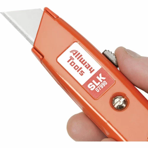 This double overlap, die-cast retractable knife comes with 3 blades. Universal blade system allows any blade to fit. Sold 10 per box.