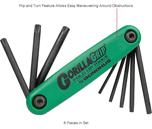 GorillaGrip® Tamper Resistant Tip Fold Up 8 pc Tool. Color Coded. w/ProGuard™ Finish. Includes sizes: TR9-TR40.