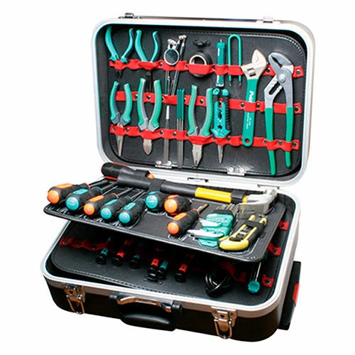 - Heavy-duty ABS cases with wheels and telescoping handle