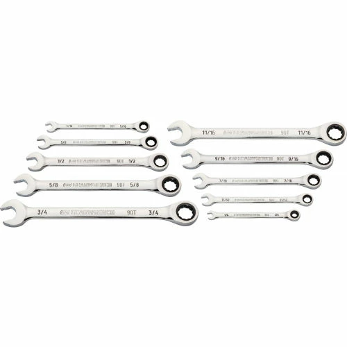 - 90-tooth ratcheting box end delivers a 4° swing arc to turn a fastener in tight spaces