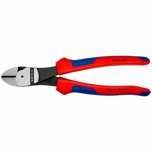 Compared to conventional side cutters of the same size, the Knipex® 74 22 200 offers a significantly better ratio of power requirement and cutting performance. The geometry of the blades, the joint and the handles is designed for efficiency.This tool is the first choice for tough continuous use, eg on assemblies or in industrial processes. The ergonomic design protects the user’s strength. The cutting performance is impressively high. Also thanks to the hand-friendly shape of the handle profile and the solid multi-component casing, the good reasons for these heavy-duty diagonal cutters are clearly in the hand. Although it is extremely stable due to the particularly robust construction with a forged joint axis, the weight of these heavy-duty diagonal cutters is pleasantly limited at 300 g.