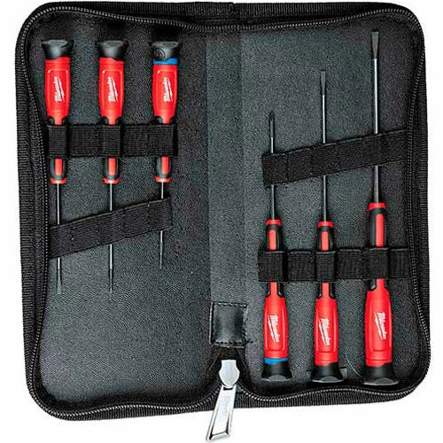 Milwaukee® Precision Screwdrivers feature an All-Metal Core for up to 4x strength. Precision machined tips provide secure fitment and long life. The extended reach design and longer shanks deliver improved visibility and reach. 360-degree rotating back caps offer greater control, driving ability, and tuning. Additionally, color coded markings allow users to easily ID tool on the jobsite. Chrome plated shanks increase tool life by reducing corrosion and providing superior rust protection.
