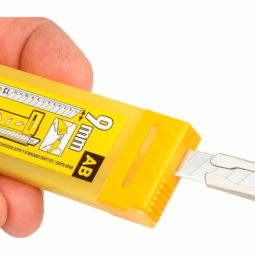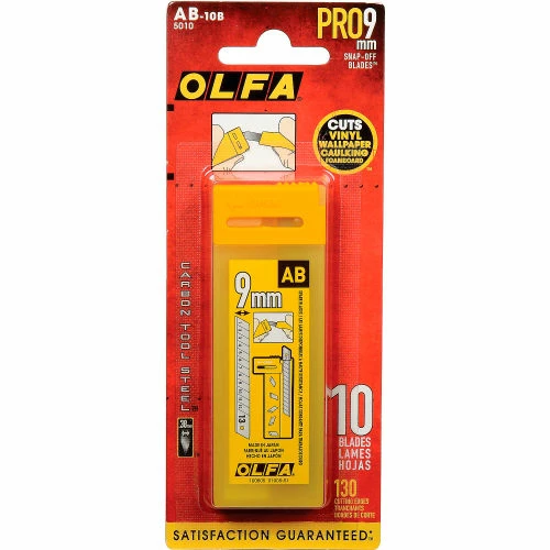 This pack of 10 silver snap-off blades is a lifesaver when you’re busy working on a project. Simply insert a blade in your OLFA® knife, and you’ve got 130 more blade edges to work with. The blades are designed to cut through packaging, shrink wrap, vinyl, window film, wallpaper, caulking, foam board and other materials.