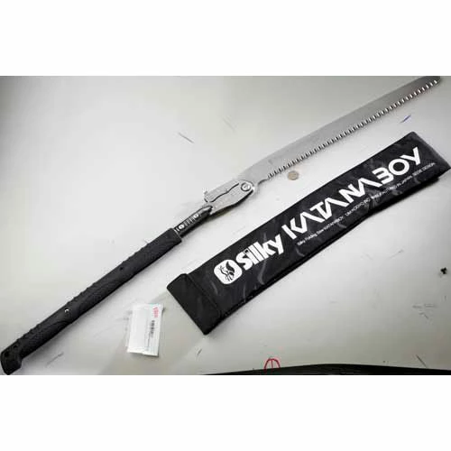 Translated into English, Katana means the curved, single-edge sword used by Samurai, their weapon of choice. In tree talk, we simply say man-powered chain saw.This beefy, two-handed folding saw from Silky is currently the biggest in its class. And with its nonslip, rubberized grip and taper-ground, impulse-hardened 19-inch blade, youll make mincemeat out of any firewood-sized limb that says differently