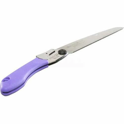 Compact lightweight folding saw with 6-3/4-inch blade that will take up very little room in your pocket or backpack. Nicknamed as “Little Giant” due to its extraordinary cutting capacity. This sleek saw features rust-resistant, hard chrome-plated, taper-ground blade with an impulse-hardened non-set tooth design for greater cutting efficiency. The precision-ground, rrazor sharp blade provide fast, clean and smooth cutting. The blade locks securely into one of two open positions, in line with the handle and flush cutting. The blade resists the effects of tree resin and easily wipes clean. The non-slip rubberized handle provides a sure and comfortable grip even in the most difficult operating conditions. Exceptional design, strength, balance and superior finish quality. Clear plastic flip-lock carrying case with belt clip is included. An ideal saw for your glove box or to carry on hikes. Made in Japan. POCKETBOY is available in two blade lengths: 5-inch (130 mm) and 6-3/4-inch (170 mm). The blades are interchangeable within the same blade length. Every blade length is available in four teeth sizes/configurations (tpi teeth per inch): 7 tpi Large/Coarse (pruning, green wood), 8.5 tpi Medium (soft wood), 17 tpi Fine (hard wood, bamboo), and 22 tpi Extra Fine (dry hard wood). Each POCKETBOY has a color-coded handle associated with the teeth configuration: Red Large teeth, Black Medium teeth, Yellow Fine teeth, and Purple Extra Fine teeth.