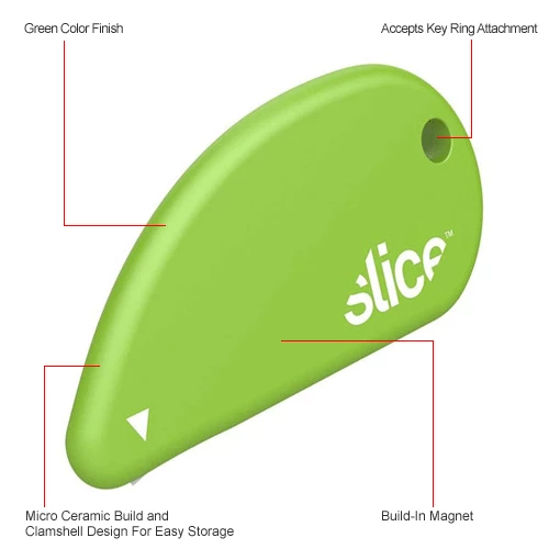 Finger-Friendly® microscopic ceramic blade that’s quick, easy and a safe substitute for scissors or traditional safety knives. Slice® Safety Cutters are perfect for clipping, removing shrink-wrap, opening clamshell plastic packaging, paper and more.