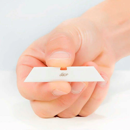 The Slice® 10528 utility knife blades have a pointed tip for cuts that require a piercing action. As with all Slice® safety blades, the 10528 blades are non-sparking, non-magnetic, chemically inert, feature no oil coating, and never rust. The proprietary Finger-friendly® edge is safe to the touch, reducing injuries and lowering costs. These blades are compatible with several Slice® handles: the 10550, 10554, 10558, and 10562 utility knives; the 10591 and 10593 scrapers; and the 10585 Manual Carton Cutter.