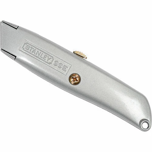 Stanley® 10-099, Classic 99® Retractable Blade Utility Knife, Gray Durable, all-metal knife body construction. Machine screw firmly holds knife body together – Screwdriver required for blade change. Interlocking nose design helps secure blade and helps prevent body separation. Blades included (11-921): 3. Retractable Blade Positions: 3. Works with most standard utility blades. For use with: 11-921 MUST BE 18 YEARS OR OLDER TO PURCHASE THIS PRODUCT