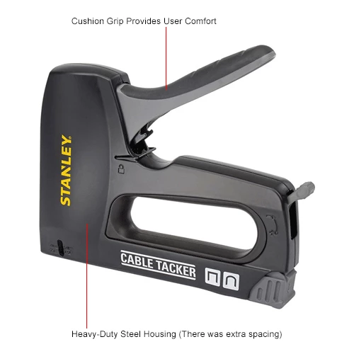 - Easy-squeeze product works overtime as a staple gun, brad nailer, cable tacker and wire tacker