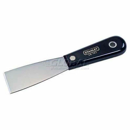 Stanley® 28-240, Nylon Handle Flexible Putty Knife, 1-1/4″ Wide Blade Hardened, tempered and polished steel blade. Nylon handle resists shattering. Permanently fastened full tang blade.