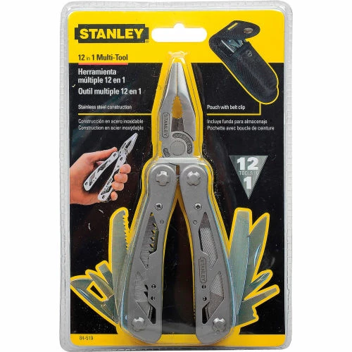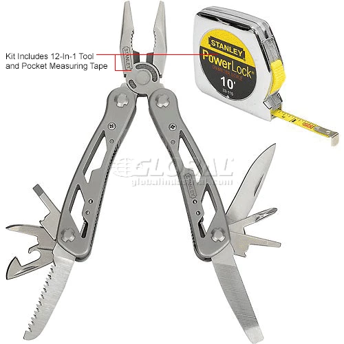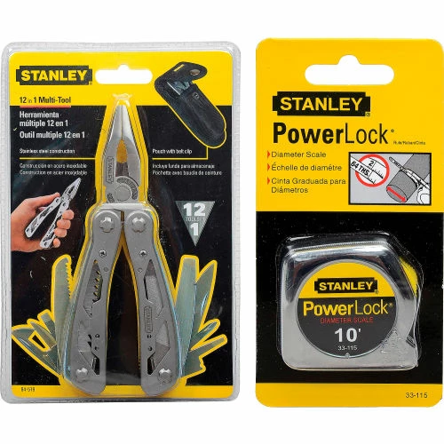 Stanley 12-in-1 Multi-Tool with Stanley PowerLock Pocket Tape Rule are package together to provide two popular maintenance tools for one low price. 12-in 1 Multi-Tool is made of stainless steel for lasting durability. Multi-function tool includes pliers, wire cutter, saw Philips screwdriver, standard screwdrivers, knives, bottle opening and file. Nylon belt holster provides at reach access. Pocket Tape Rule features a polymer coated blade and chrome high impact ABS case for lasting strength. Secure blade lock will not creep during measurements. Must be 18 years or older to purchase this product.