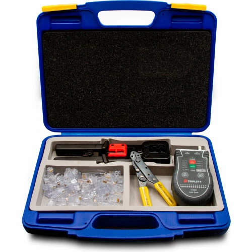 Tripplet Triplett High-Speed, Pass-Thru RJ45 Tool Kit w/ Crimp Tool, Connectors, Wire Cutter, Cable Testers