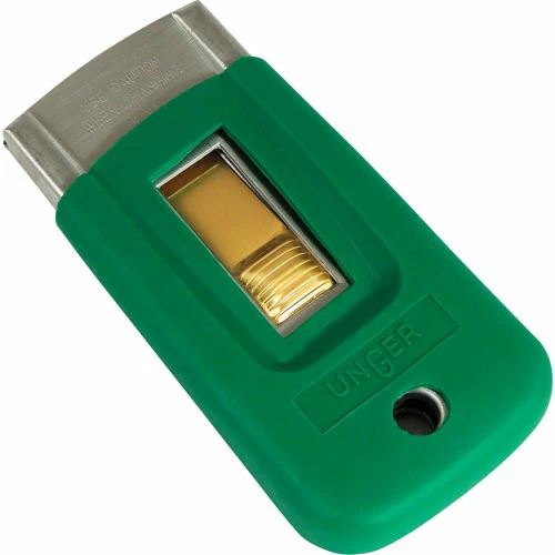 The Unger® ErgoTec® Safety Scraper features a unique locking system that eliminates blades from dangerously slipping out while working. Push the non-slip trigger forward and the blade is ready for use; push once more to easily change the blade. This scraper has all the features of the standard SafetyScraper with the added comfort of an ergonomic grip. The rubber grip prevents the scraper from slipping in your hand, which makes the cleaning of surfaces even easier. Replace blades when worn or pitted with these compatible blades: